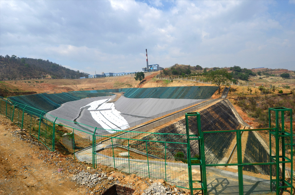 擋壩采用加筋土石壩,水平防滲系統采用雙人工襯層結構,滲瀝液和次滲瀝液重力流至下游的滲瀝液調節池,滲瀝液產量12t/d,滲瀝液調節池有效容積1200m³。