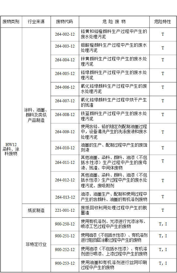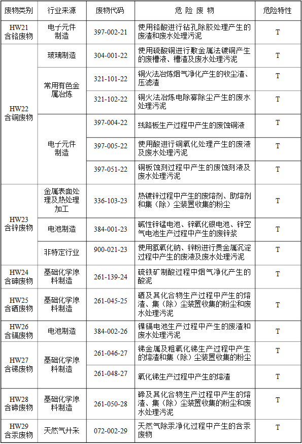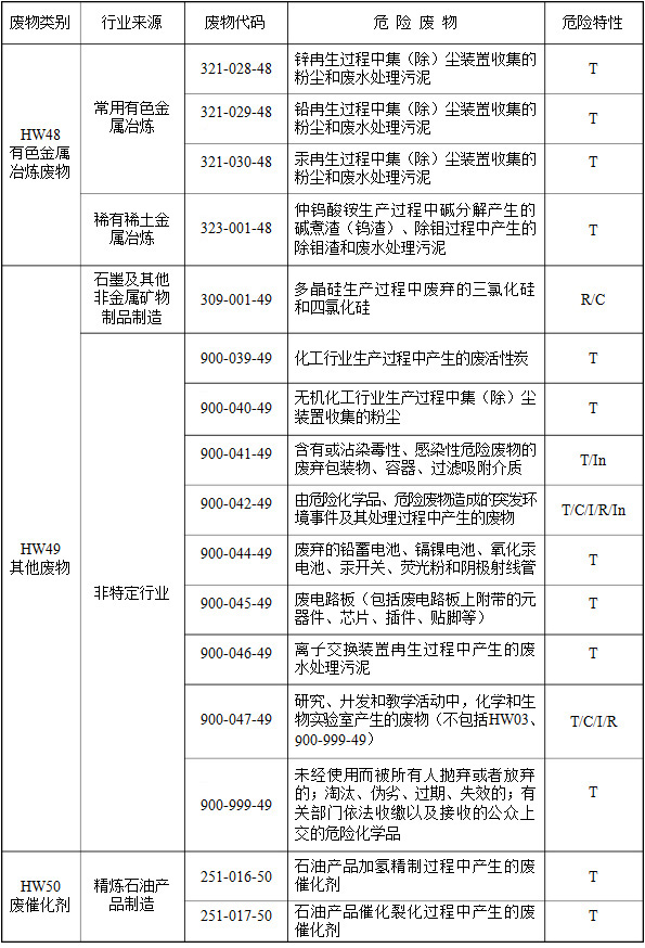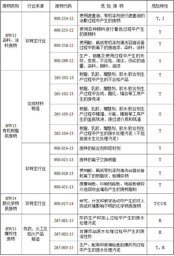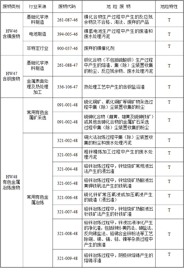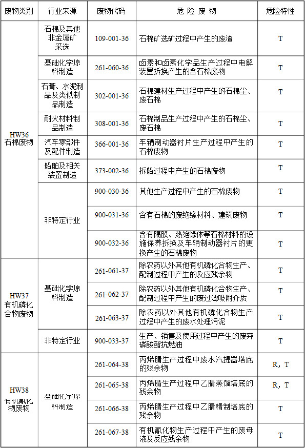 (二)行業(yè)來源,是指危險廢物的產生行業(yè)。