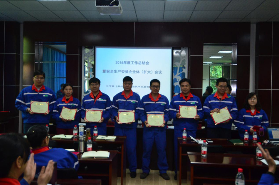 2017年1月22日,中節能(攀枝花)清潔技術發展有限公司召開了2016年度工作總結會暨安全生產委員會全體擴大會。會議傳達了上級公司關于安全生產工作的有關精神,宣貫了“安全九條禁令”和關于安全、環保刑事犯罪“兩高”司法解釋。各部門負責人分別與公司簽訂了《2017年安全環保目標責任書》,中層以上管理人員及核心崗位人員分別與公司簽訂了《廉潔從業責任書》。會議宣讀了中國環境保護集團公司、中節能清潔技術發展有限公司關于表彰2016年度先進集體和先進個人的決定,宣讀了攀枝花公司表彰2016年度先進個人決定,對獲得表彰的先進班組和先進個人頒發了榮譽證書。