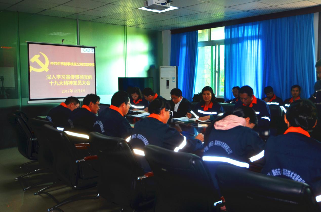 2017年12月4日下午,中節能(攀枝花)清潔技術發展有限公司在廠區二樓會議室組織召開“深入學習宣傳貫徹黨的十九大精神”黨員大會,會議由公司董事長、黨支部書記肖琴主持。攀枝花公司全體黨員參加會議,非黨員的中層管理人員、技術工程師、生產班組長等列席會議。