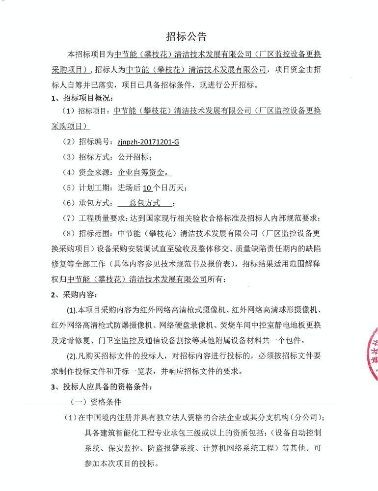 廠區(qū)監(jiān)控設(shè)備更換采購項目招標(biāo)公示