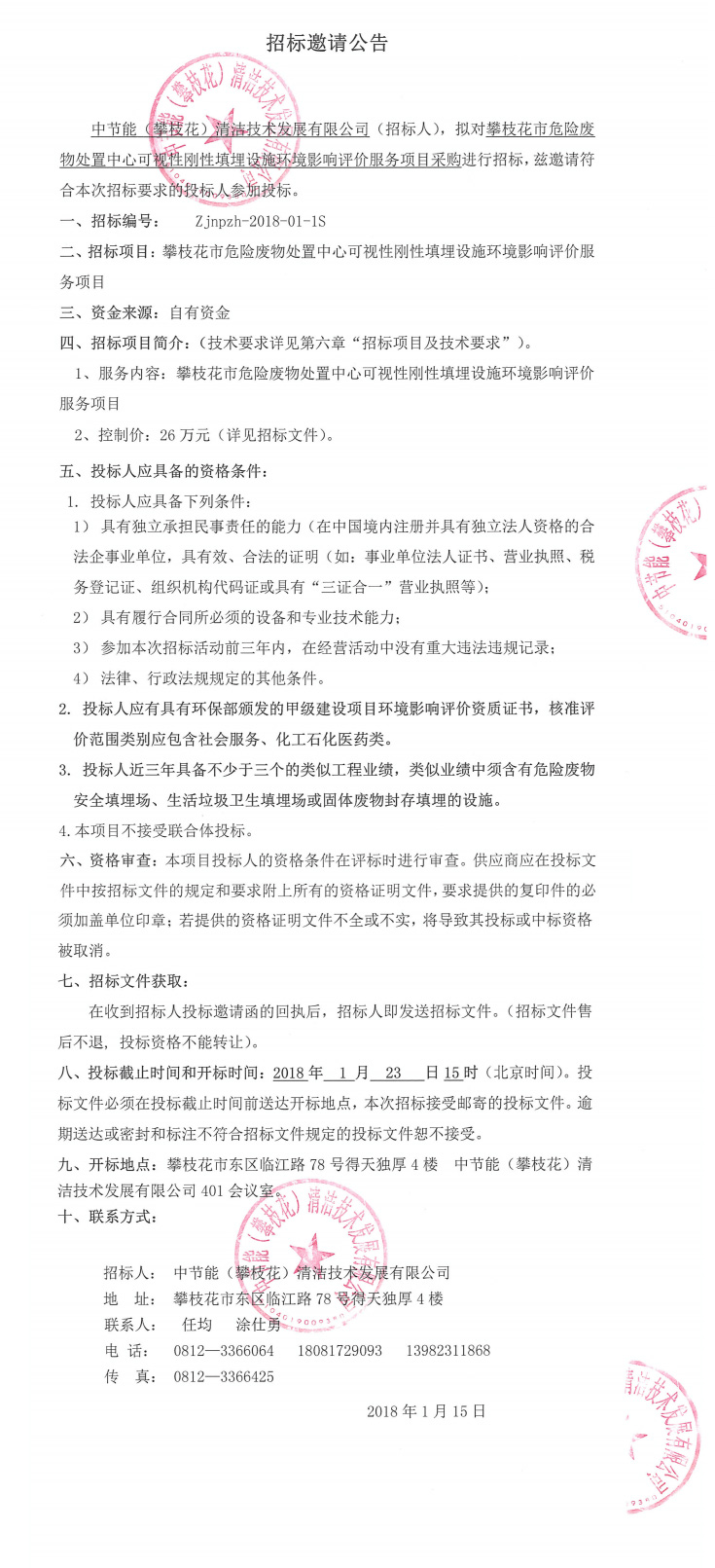 攀枝花市危險廢物處置中心可視性剛性填埋設施環境影響評價服務項目采購招標公示