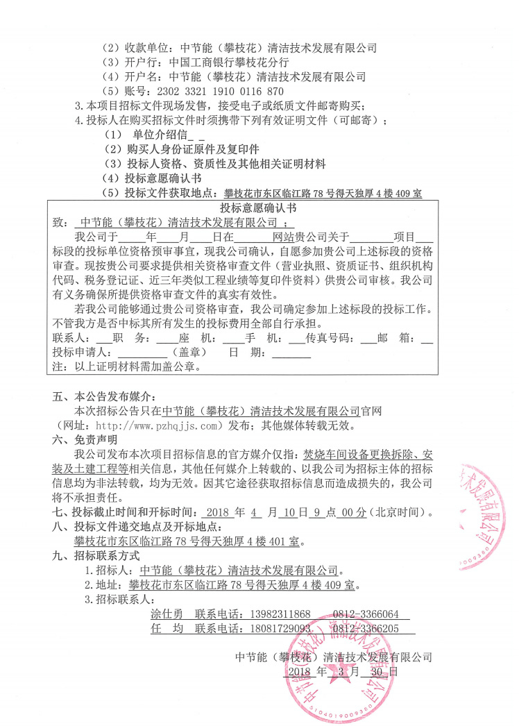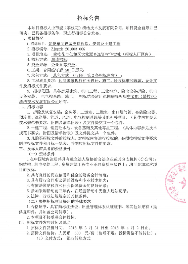 焚燒車間設備更換拆除、安裝及土建工程招標公告