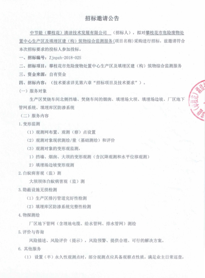 生產區及填埋區建(構)筑物綜合檢測服務采購進行招標邀請公告