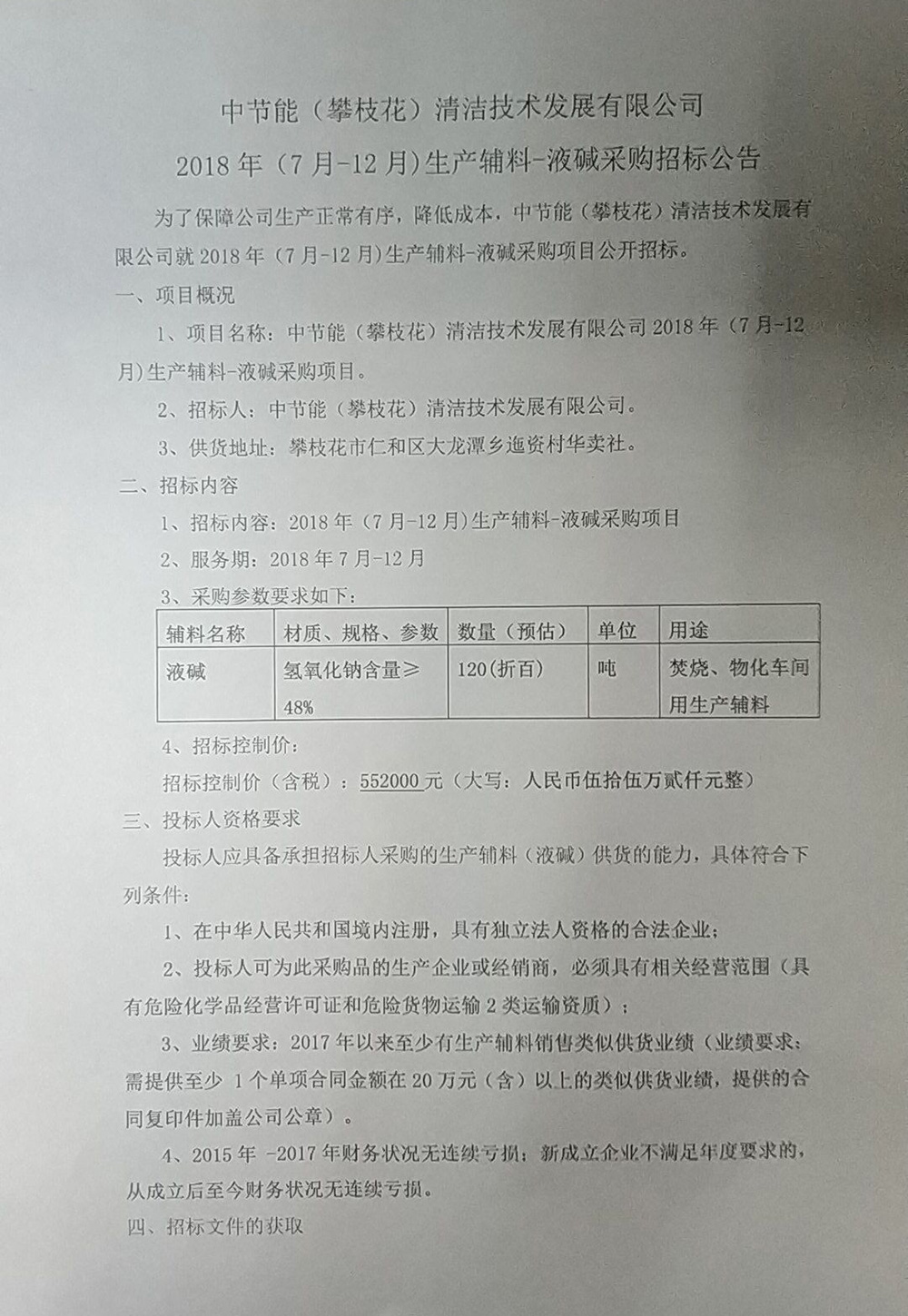 生產(chǎn)輔料-液堿采購(gòu)招標(biāo)公示