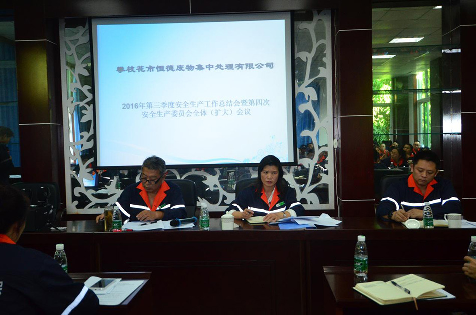 2016年11月10日下午,攀枝花市恒德廢物集中處理有限公司召開了第三季度安全生產工作總結會暨第四次安委會(擴大)會議,公司安委會成員和全體員工參加會議。 會議學習了中環集團公司鄭朝輝董事長關于“中國環保